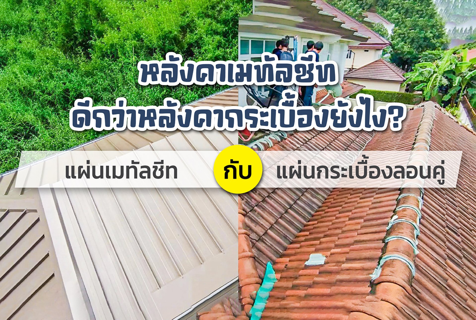 ภาพเปรียบเทียบหลังคาเมทัลชีทและหลังคากระเบื้อง