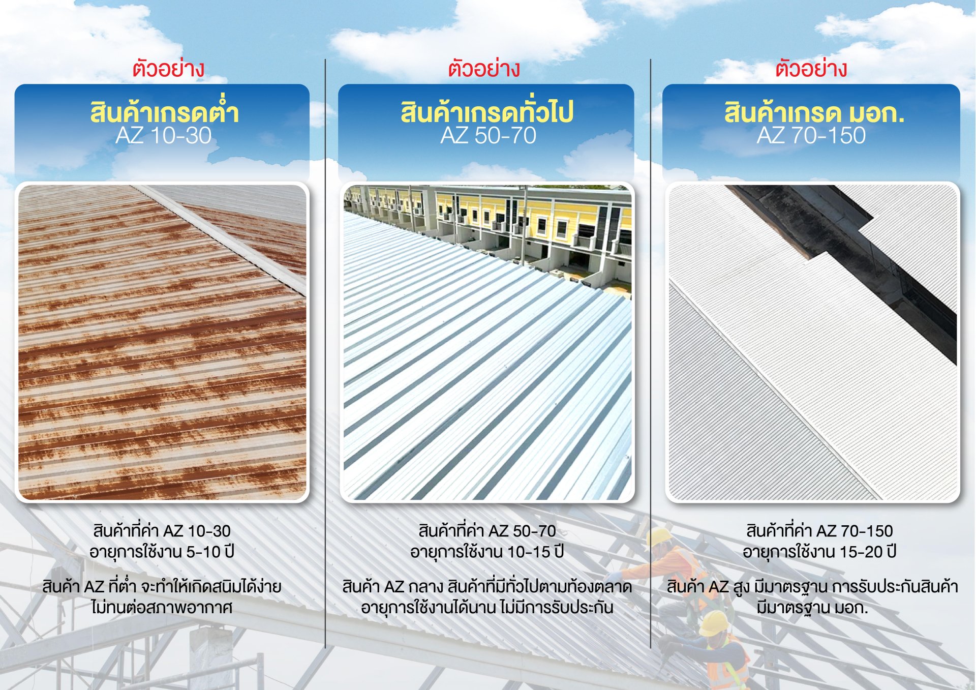 คุณสมบัติและค่า AZ ในวัสดุชั้นเคลือบอลูซิงค์หลังคา